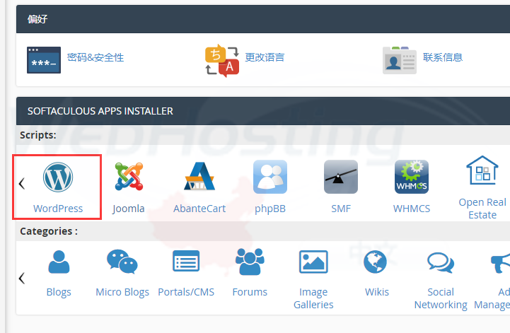 进入cpanel控制面板之后,拉到最底部,找到Wordpress,并点击进入