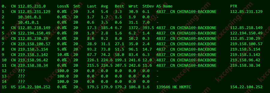 联通去程:169线路