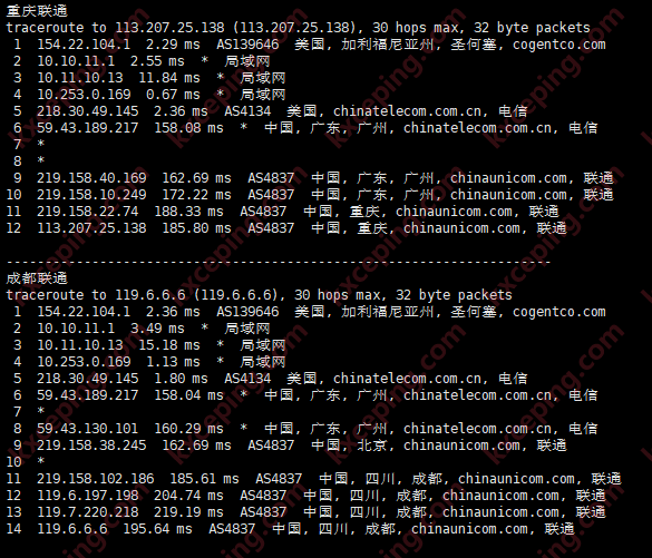 电信双程CN2 GIA线路,联通和移动出口走自己的直连线路,回程全部为CN2 GIA